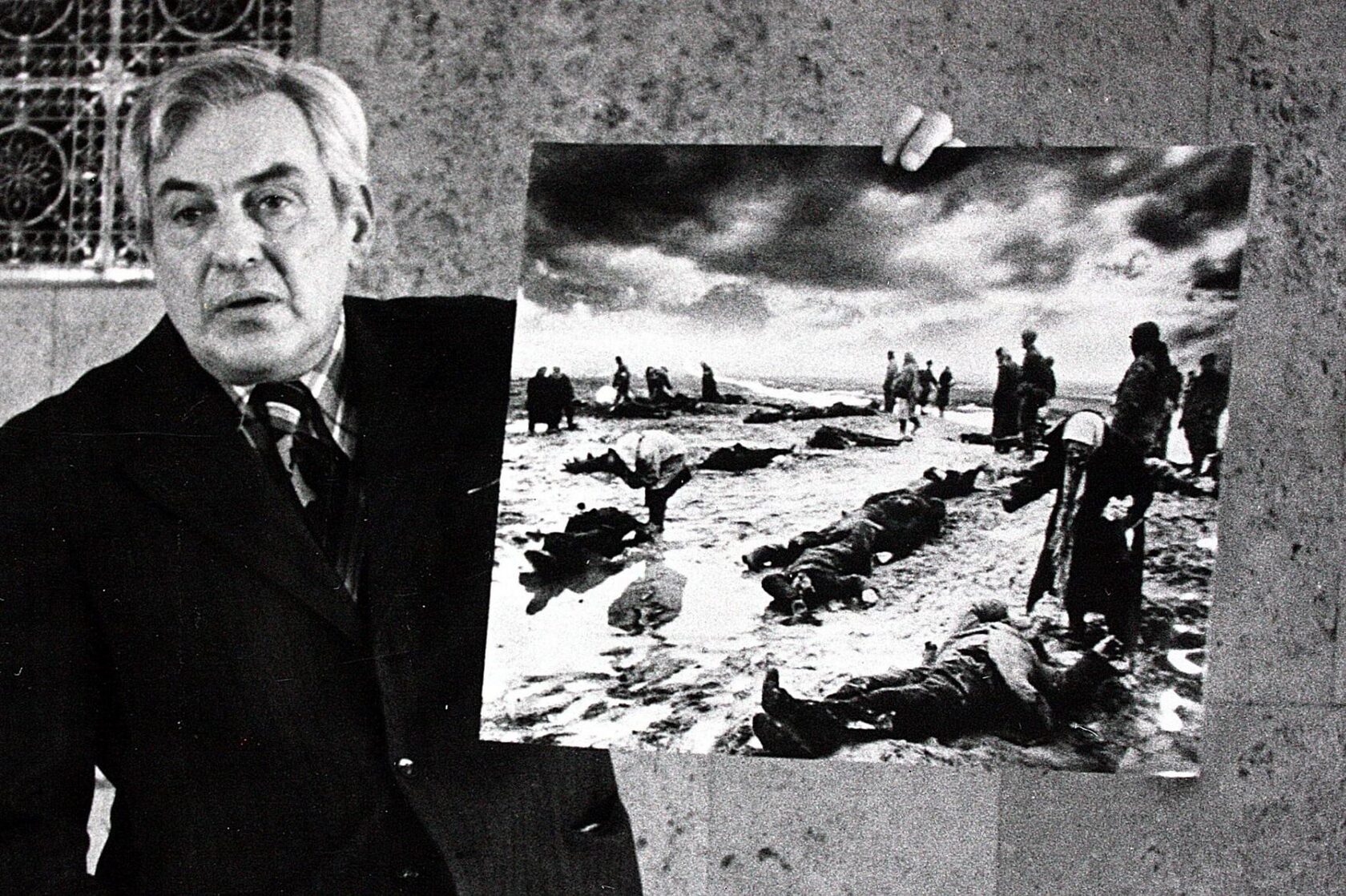 Военкор газеты «Известия» Дмитрий Бальтерманц 2 января 1942 года сделал снимок «Горе», который вошёл в акт Чрезвычайной государственной комиссии на трибунале в раздел «Документ СССР-63». На фотографии местные жители оплакивают убитых немцами мирных жителей.