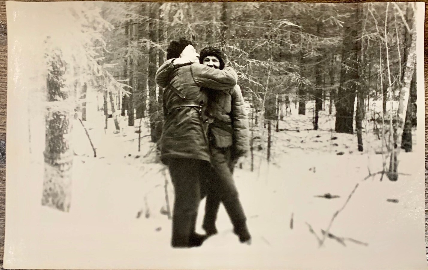 Тем не менее, этот случайный кадр из личного архива – свидетельство живого чувства на войне. Очевидно, мужчина хотел увековечить поцелуй с женщиной, но та, смутившись, по-доброму отстранила его или прыснула со смеху – и в кадре остались лишь тесное объятие, смеющиеся глаза и пара улыбок.