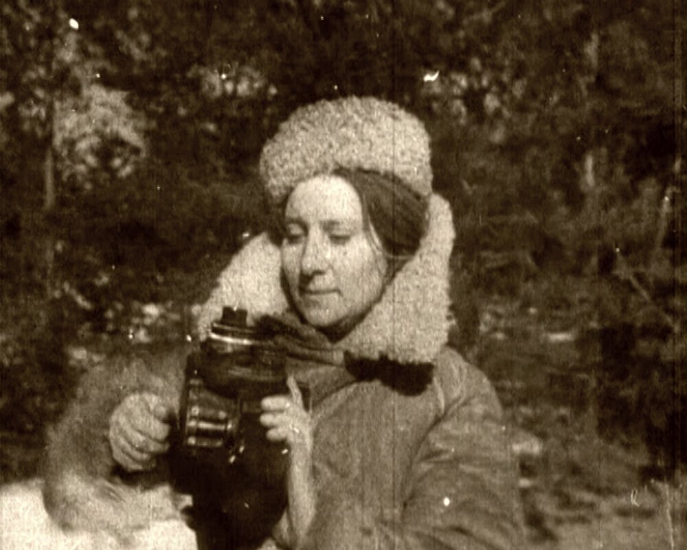 Партизанка, игриво избегающая поцелуя, – оператор-кинохроникер Мария Сухова, одна из первых советских женщин с кинокамерой. Между нею и затянутым в портупею военным как минимум взаимная симпатия. Но кто же мужчина?